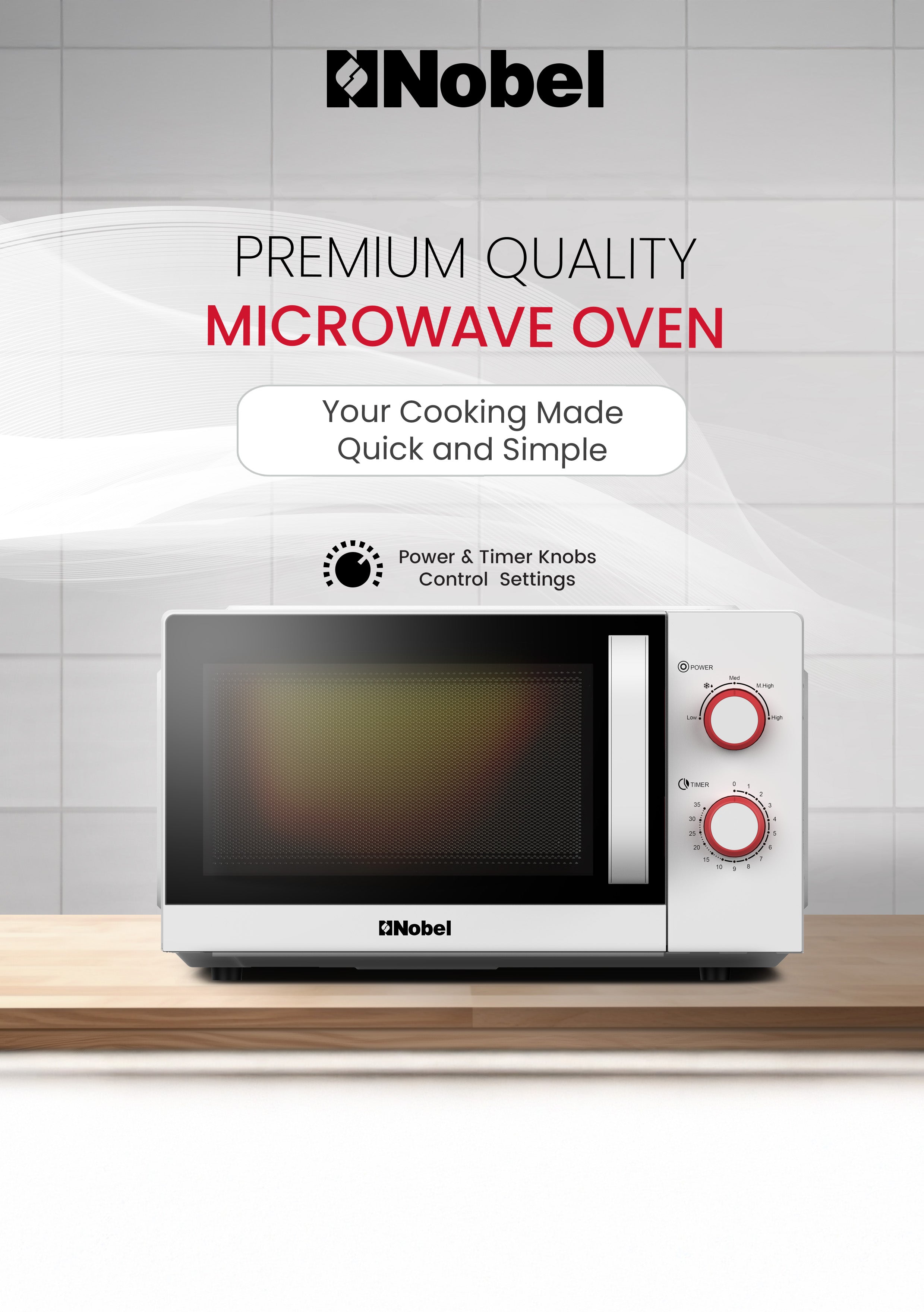 Nobel 20 Liters Capacity Microwave Oven, Knobs Control, 35mins Setting Time, 5 Power Levels, Cooking End Signal, Defrost Setting with 1Year Warranty NMO22M White