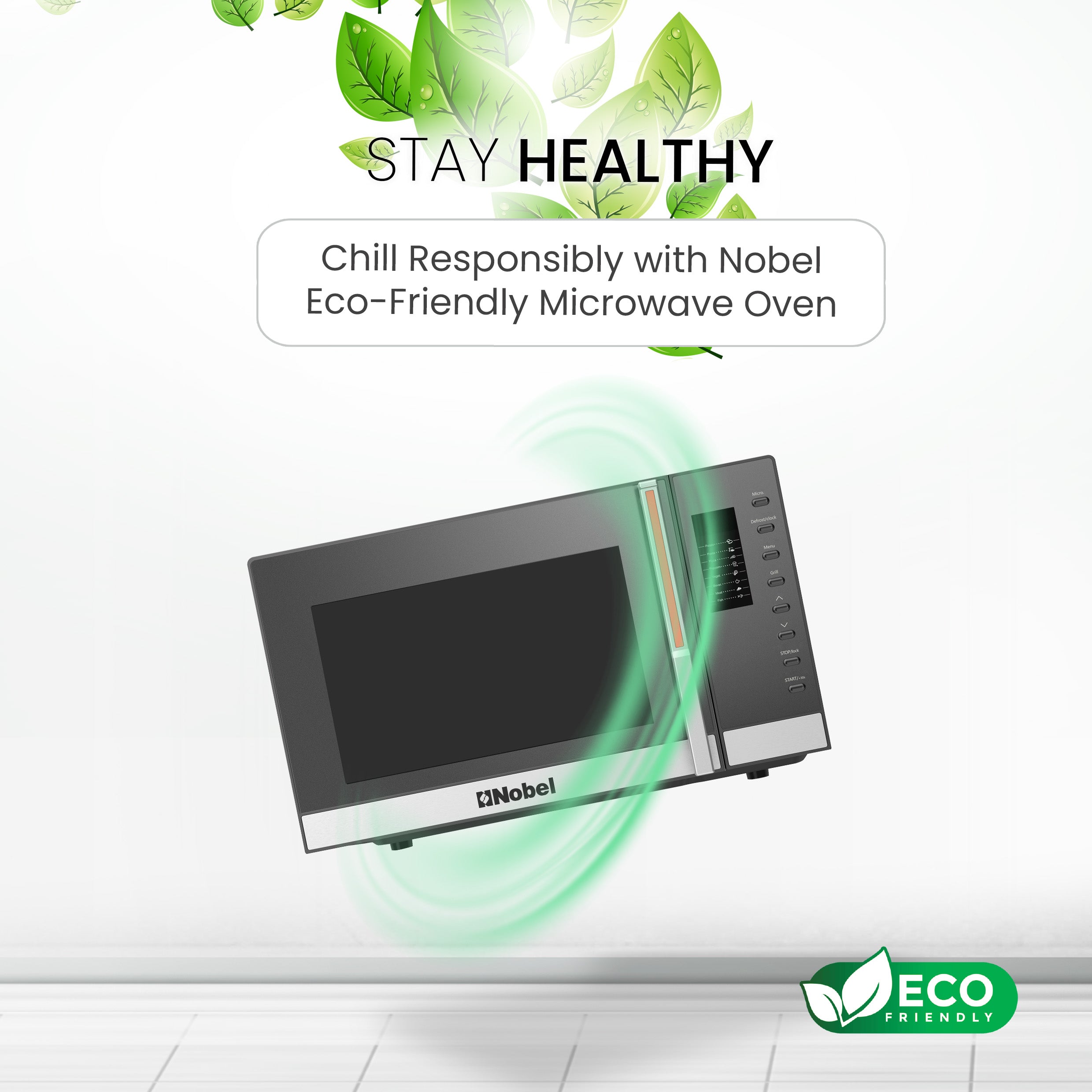 Nobel 23 Liters Microwave Oven Button Control, 60mins Setting Time, 5 Power Levels, Cooking End Signal, Defrost Setting with 2 Year Warranty NMO30D Black